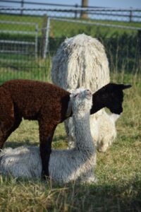 BIj aankomst voelde het even aan als ”special guests”. Ze werden van een afstand ”bekeken” door onze andere alpaca’s. Maar al snel werden zij opgenomen in de kudde. De suri’s huppelen inmiddels door het weiland met hun glanzende vacht. Wel blijkt dat deze suri’s meer behoefte hebben om binnen in de stal te gaan liggen. Hun vacht is dan ook wat dunner.